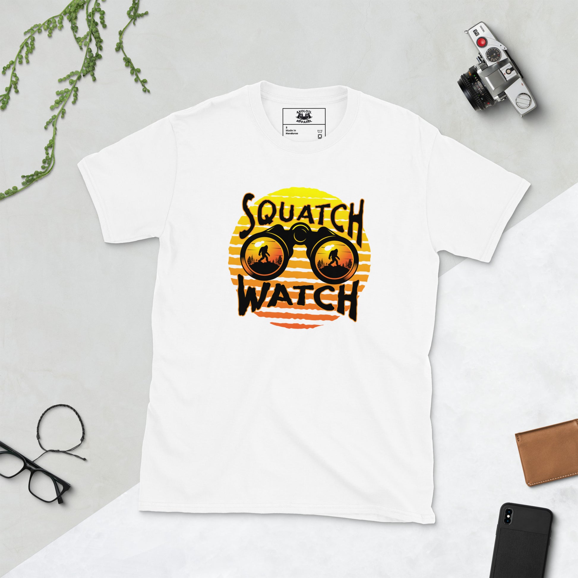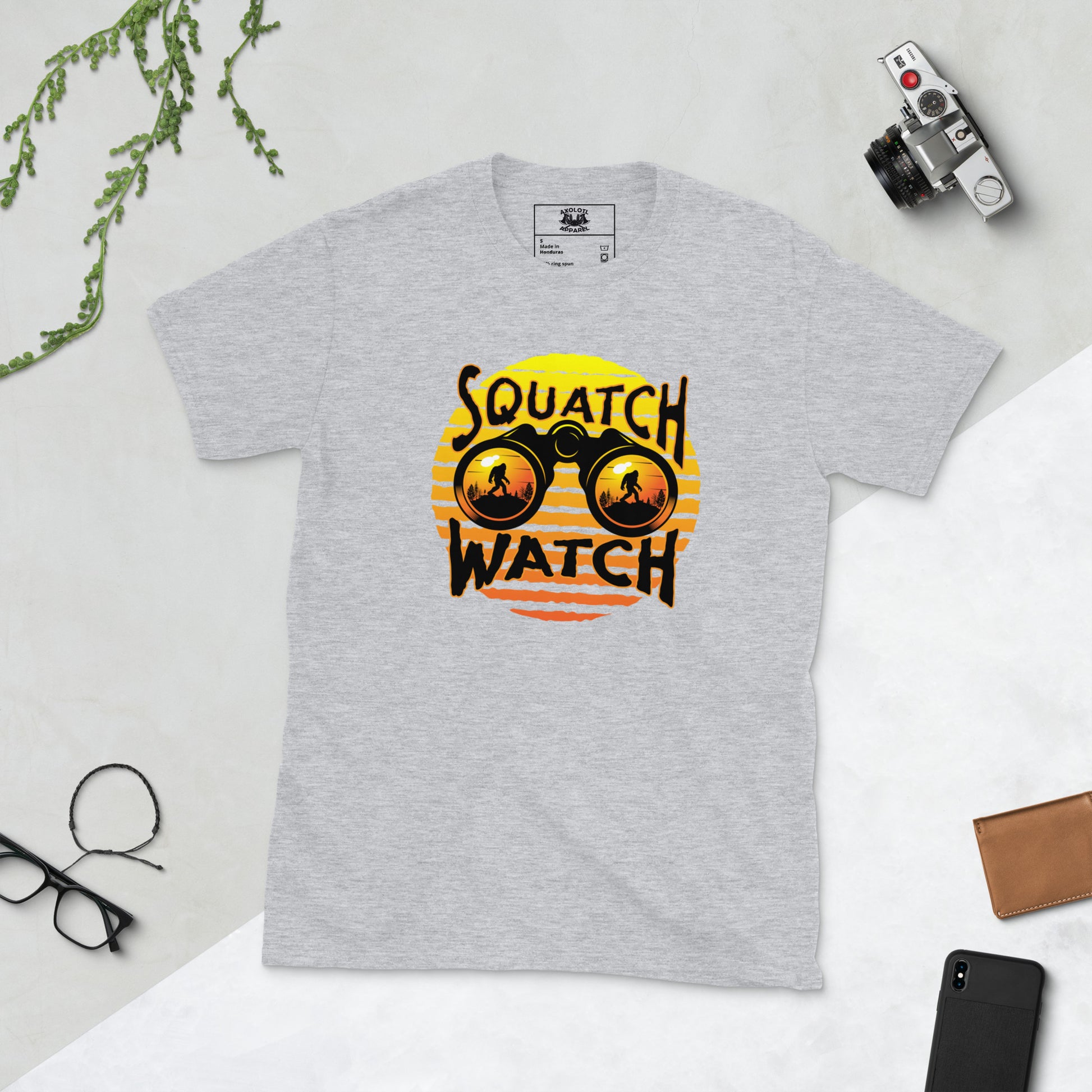 Our Squatch Watch short sleeve unisex t-shirt will be the new favorite staple of your wardrobe. It's made of 100% ring-spun cotton and is soft and comfy. The double stitching on the neckline and sleeves add more durability to what is sure to be a favorite!