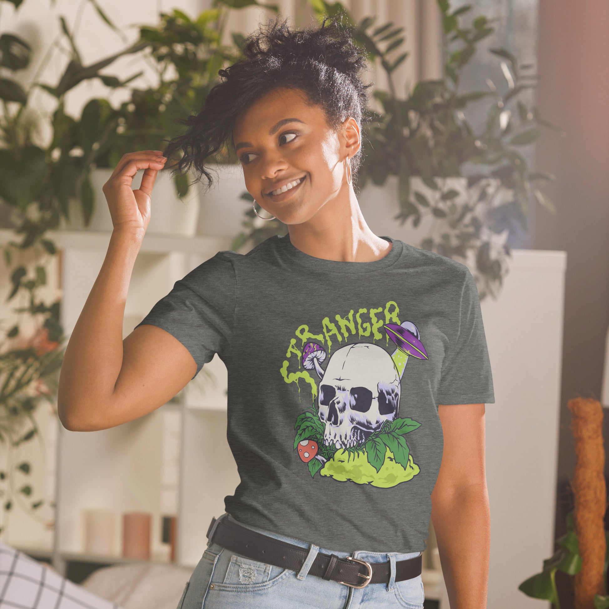 Our Unidentified Skullshrooms short sleeve unisex t-shirt will be the new favorite staple of your wardrobe. It's made of 100% ring-spun cotton and is soft and comfy. The double stitching on the neckline and sleeves add more durability to what is sure to be a favorite!